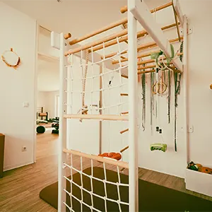 Ihr Kind steht bei uns im Mittelpunkt. Wir möchten, dass sich Ihr Kind nicht nur medizinisch gut aufgehoben fühlt, sondern auch mit Freude zur Therapie kommt. Mit viel Spiel, Spaß und Einfühlungsvermögen gestalten wir jede Therapie individuell, sodass langweilige Übungen schnell vergessen sind. Ob Trampolinspringen, spannende Balancespiele oder Klettern an der Sprossenwand – bei uns wird Therapie zum Erlebnis.